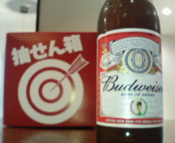 本日より、サッカー日本代表応援企画としてバドワイザーびんビールを飲むと、「サッカー日本代表オリジナルマフラータオル」か「フェイスペインティングシール」が当たるくじが引けるキャンペーンを始めます。くじがなくなりしだい終了しますのでお早めにご来店下さい。